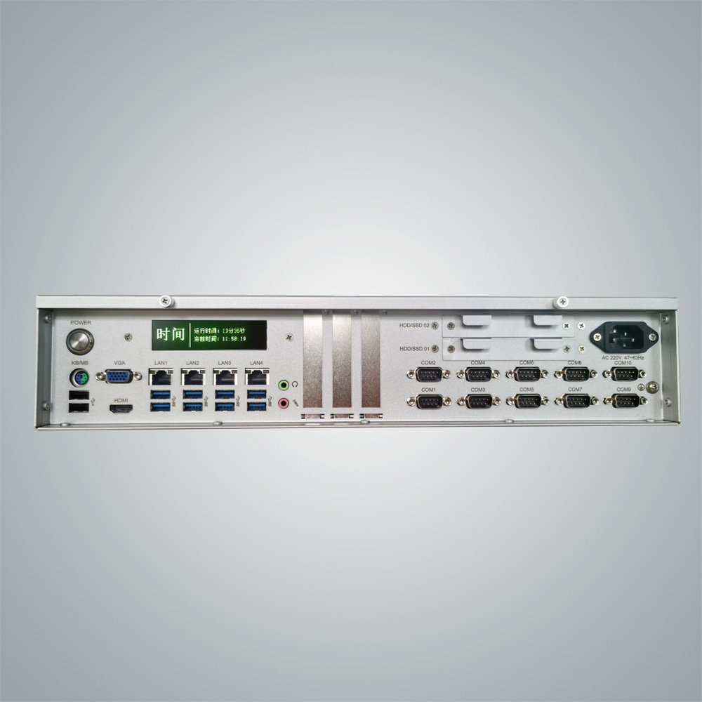 3.控制器自帶OLED狀態顯示屏,可實時顯示CPU、內存、硬盤的使用狀態,可顯示網口IP設置、串口設置等信息,方便維護人員使用。
